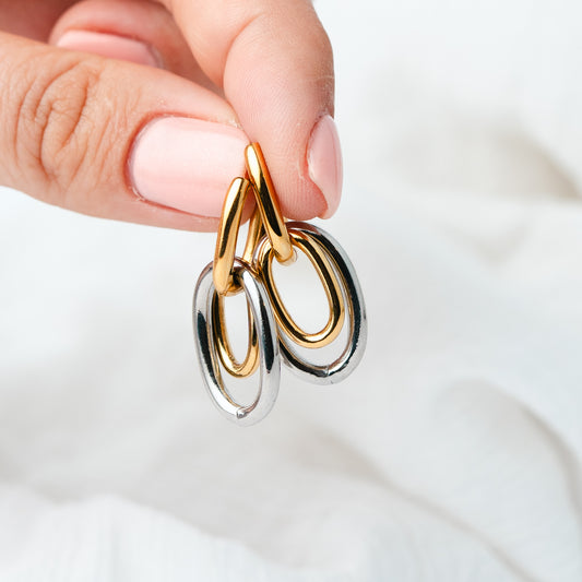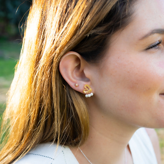 BLACK WEEKAros pegados corazón y perlas bañado en oro