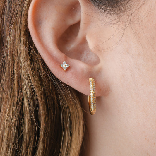 BLACK WEEKAros pegados trébol blanco bañado en oro