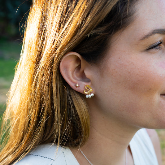 BLACK WEEKAros pegados corazón y perlas bañado en oro