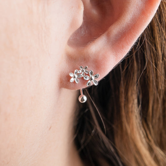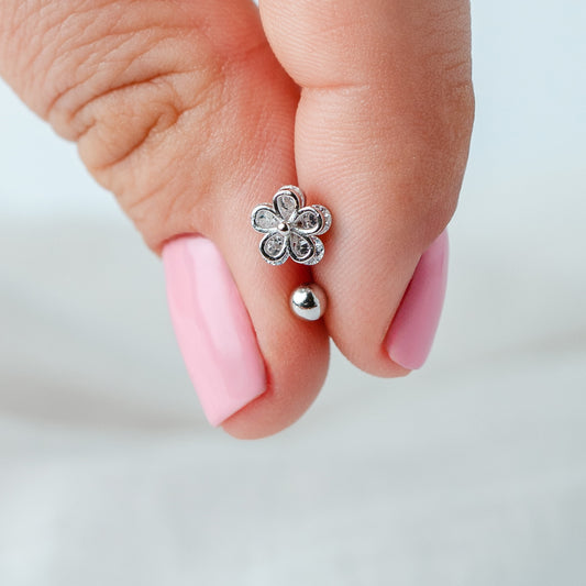 Aros pegados media flor silver