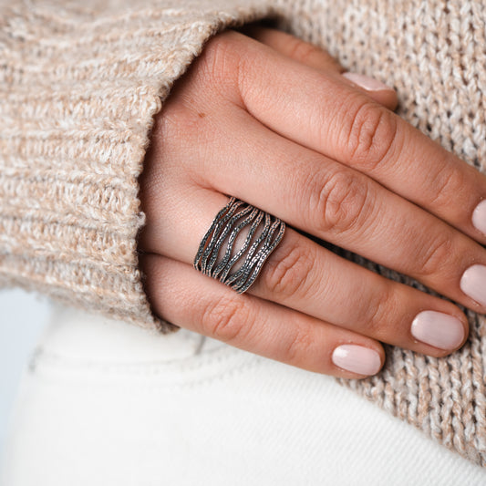 BLACK WEEKAnillo ajustable cruzado tornasol