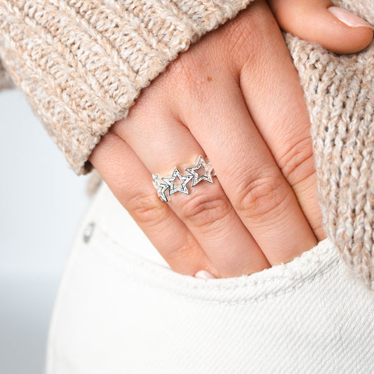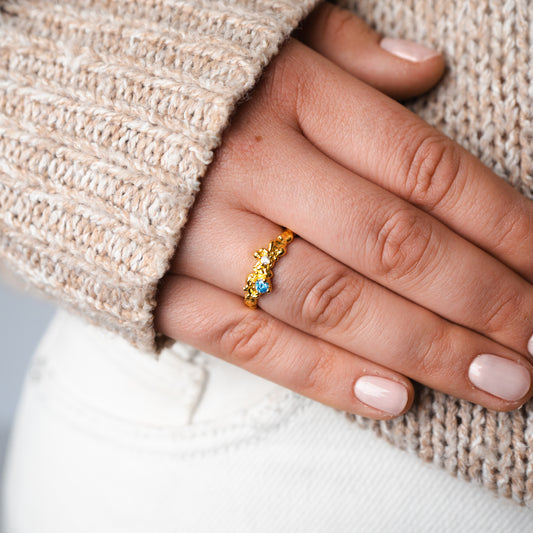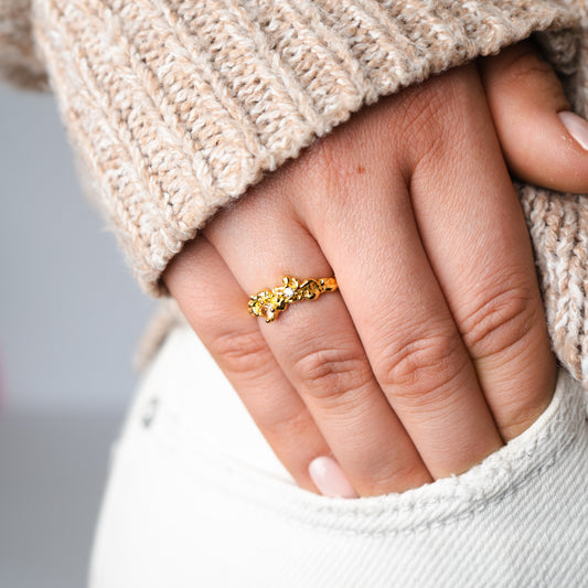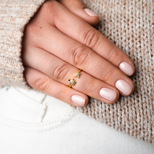 Anillo MIDI de tortuga y estrella circones bañado en oro