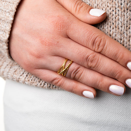 BLACK WEEKAnillo ajustable diseño lineas bañado en oro
