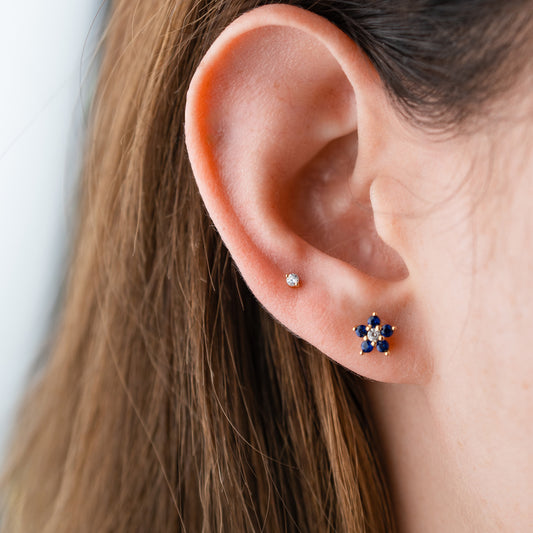 Aros pegados flor cierre pelotita bañado en oro