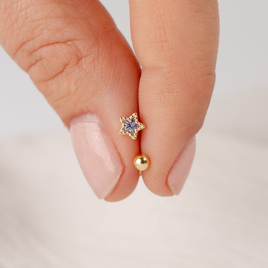 Aros pegados estrella lila cierre pelotita bañado en oro