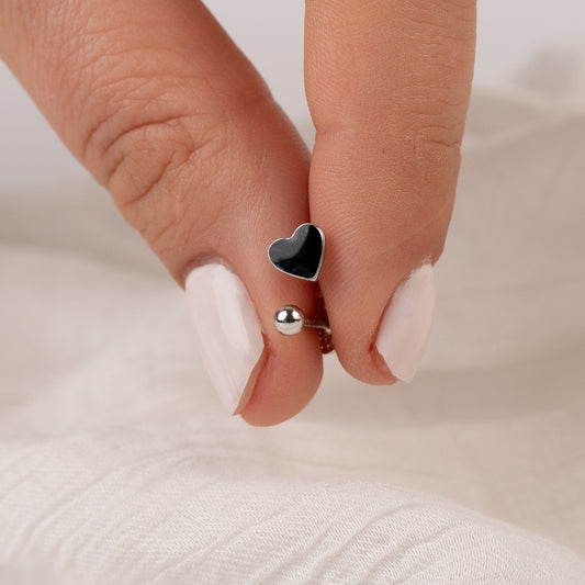 • Aros pegados corazón negro cierre pelotita