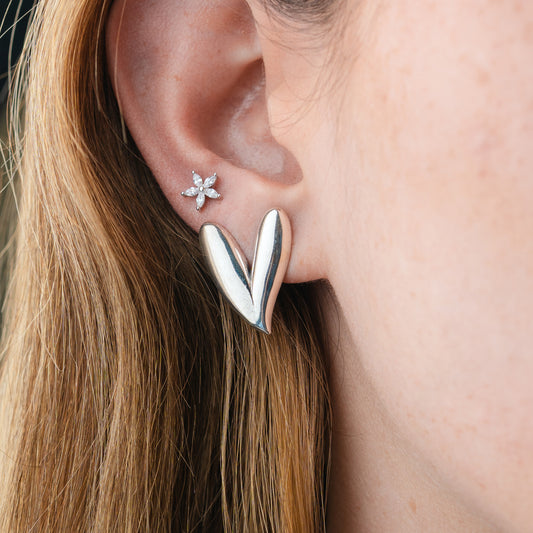 • Aros pegados corazón circón bañado en oro