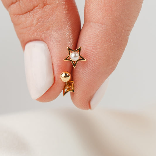 Aros pegados circón estrella perla cierre pelotita bañado en oro