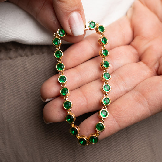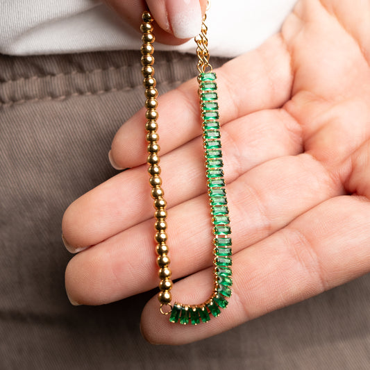 BLACK WEEKPulsera circones verdes bañado en oro