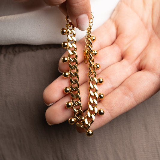 BLACK WEEKPulsera eslabones y esferas bañado en oro
