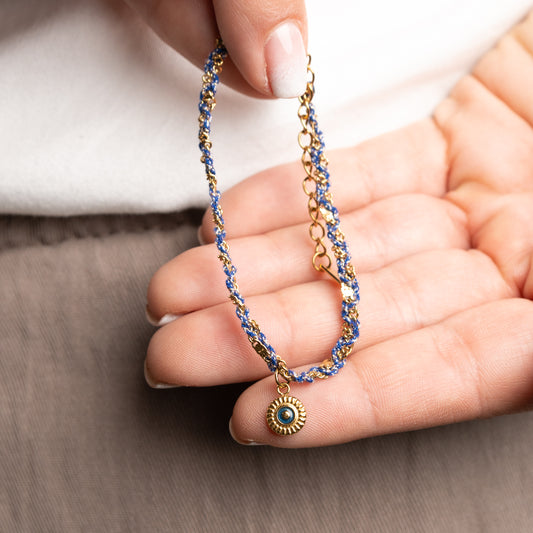 BLACK WEEKPulsera de hilo azul bañado en oro