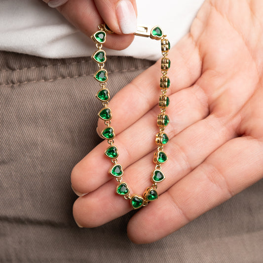 Pulsera circones corazones verdes bañado en oro