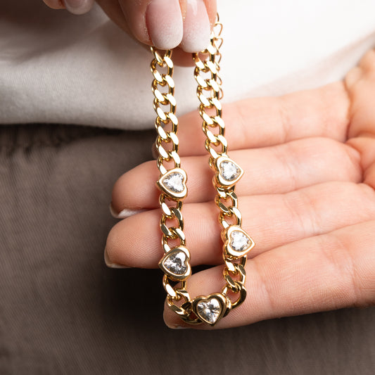 BLACK WEEKPulsera eslabones y corazones bañado en oro