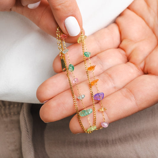 Pulseras doble mostacillas multicolor bañado en oro