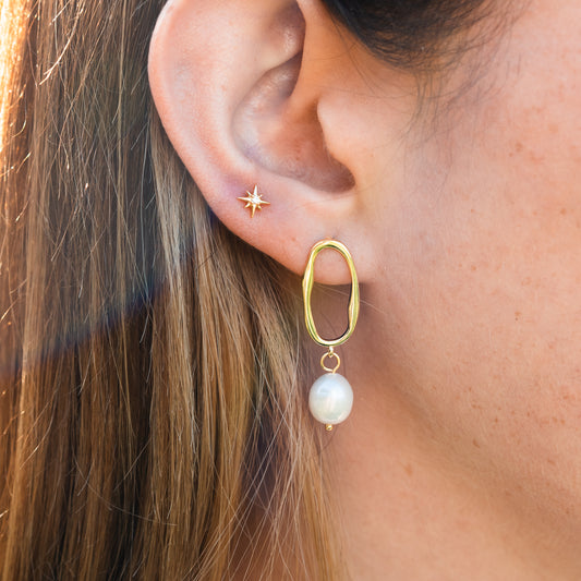 15% DCTOAros pegados corazón y perlas bañado en oro