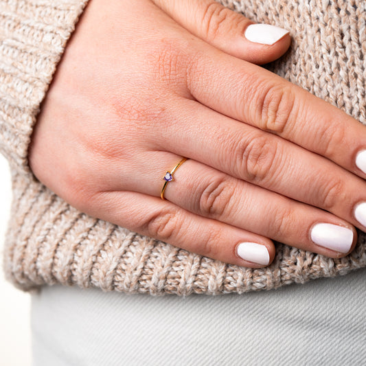 Anillo ajustable corazón circón morado bañado en oro
