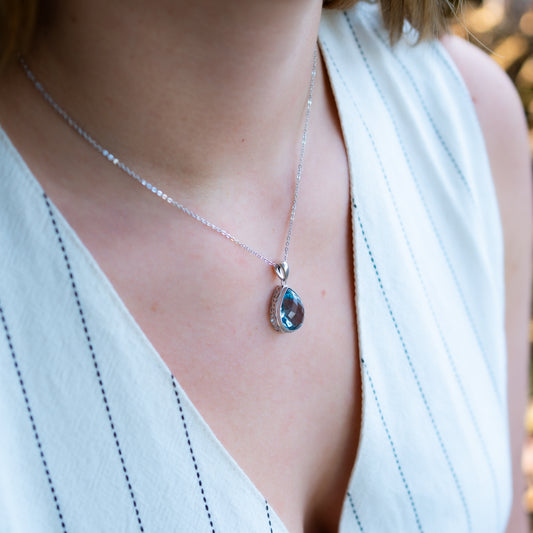 Collar gota circón celeste