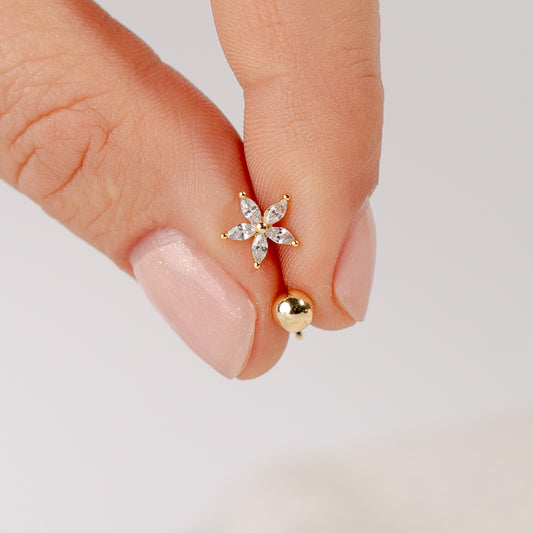 Aros pegados flor cierre pelotita bañado en oro