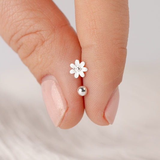 Aros pegados flor blanca cierre pelotita