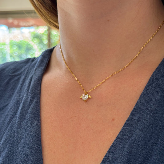Collar corazón alitas bañado en oro