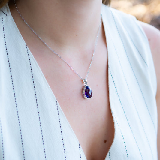 Collar gota circón morado