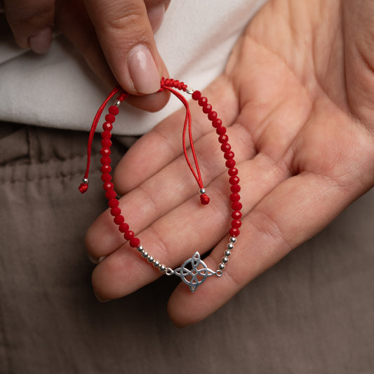 Pulsera mostacillas rojas nudo de bruja