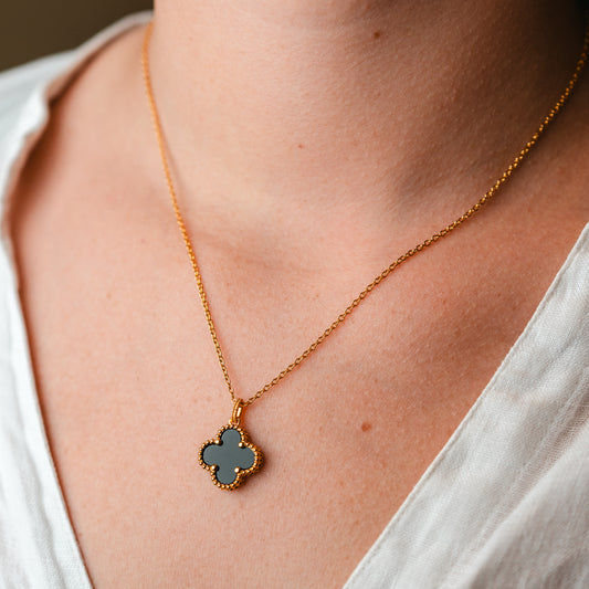 Collar trébol negro bañado en oro