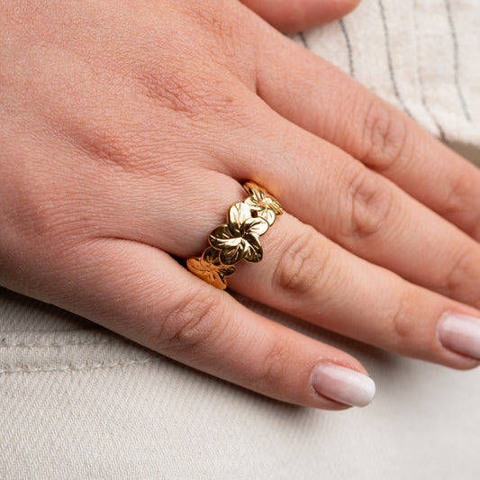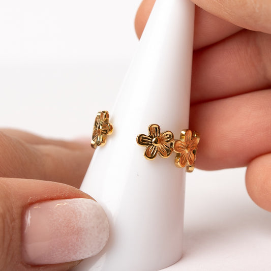 BLACK WEEKAnillo ajustable flores bañado en oro