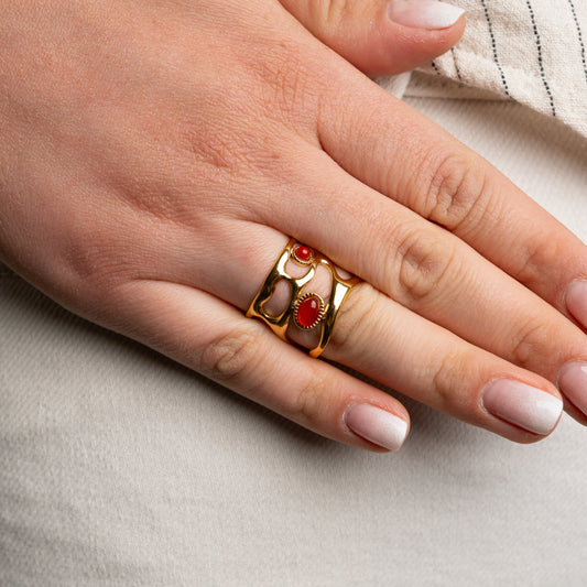 BLACK WEEKAnillo ajustable diseño rojo bañado en oro