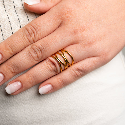 BLACK WEEKAnillo ajustable diseño calado bañado en oro