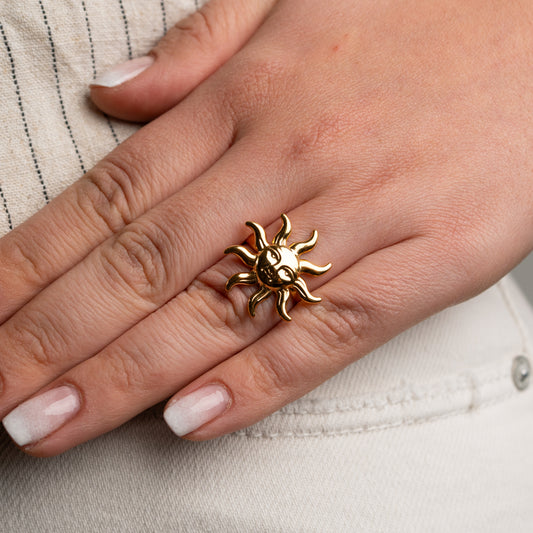 BLACK WEEKAnillo ajustable diseño sol bañado en oro