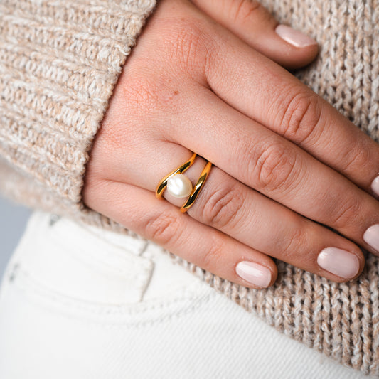 BLACK WEEKAnillo ajustable perla dorada
