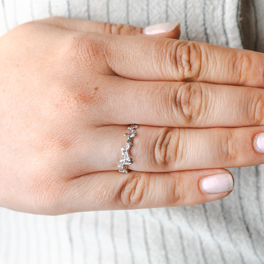 Anillo ajustable enredadera hojas pulidas