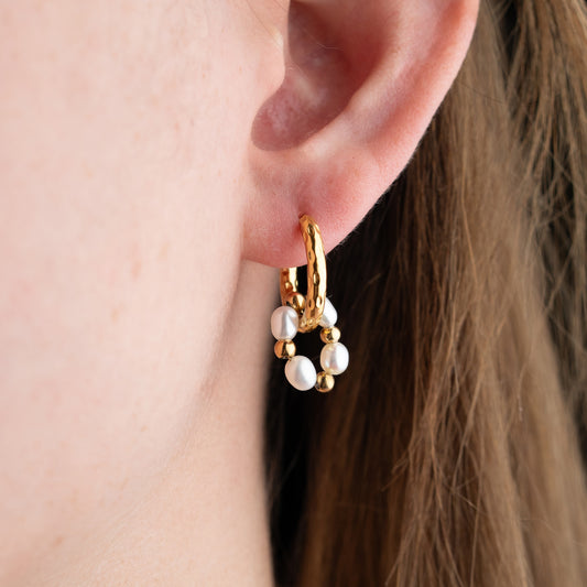 Aros argollas Perlas Colgantes Gold