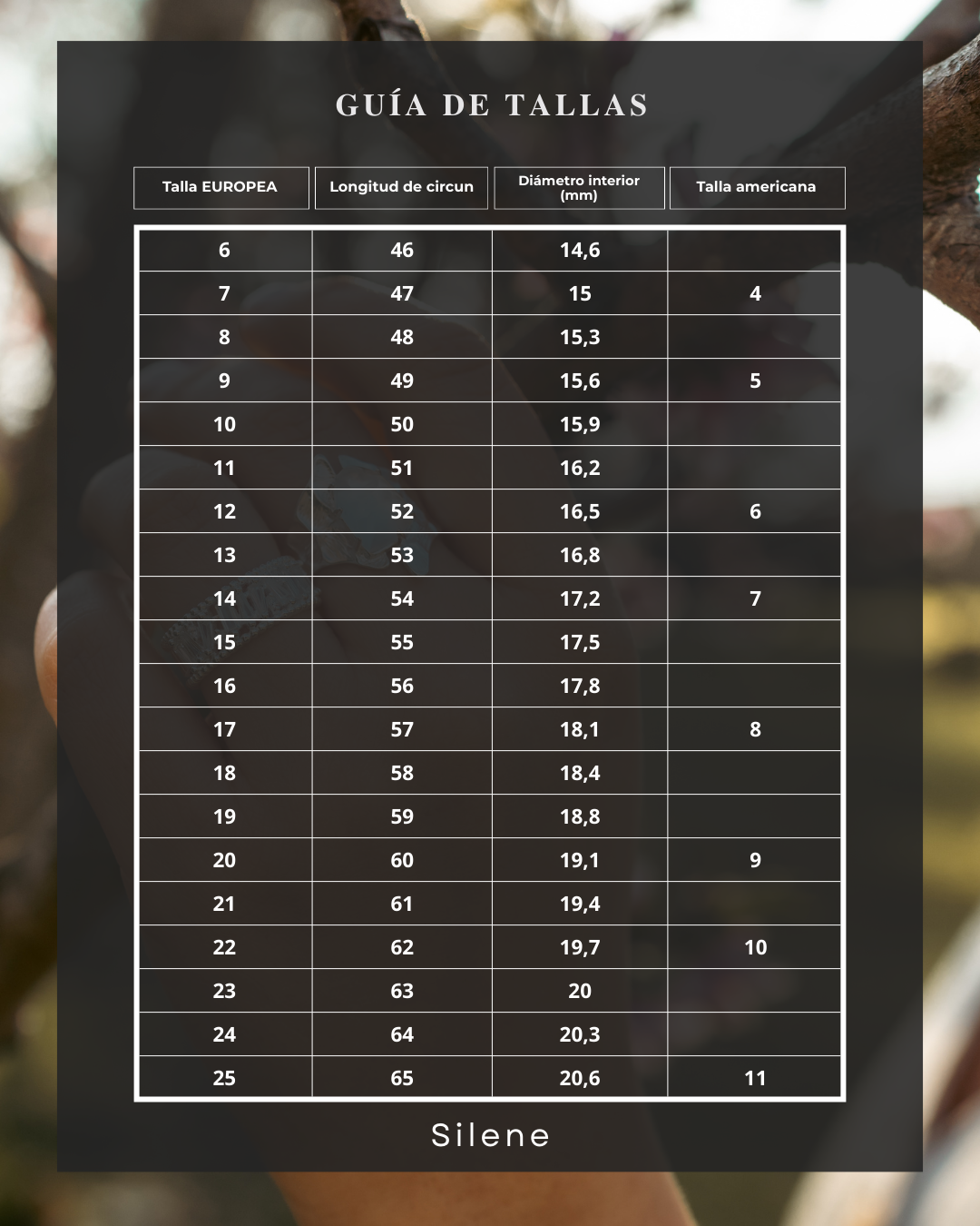 Con el diámetro interno que obtuviste, revisa nuestra tabla de tallas y encuentra la equivalencia con la talla europea.