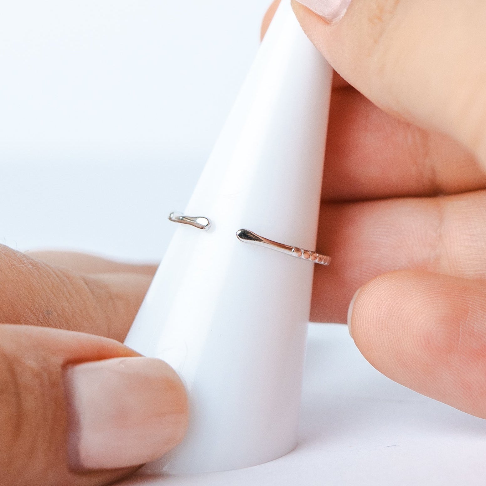 Anillo de plata con delicado corazón de circones que aporta un brillo sutil, femenino y delicado. Su banda texturizada con esferas pequeñas crea un efecto moderno y elegante.