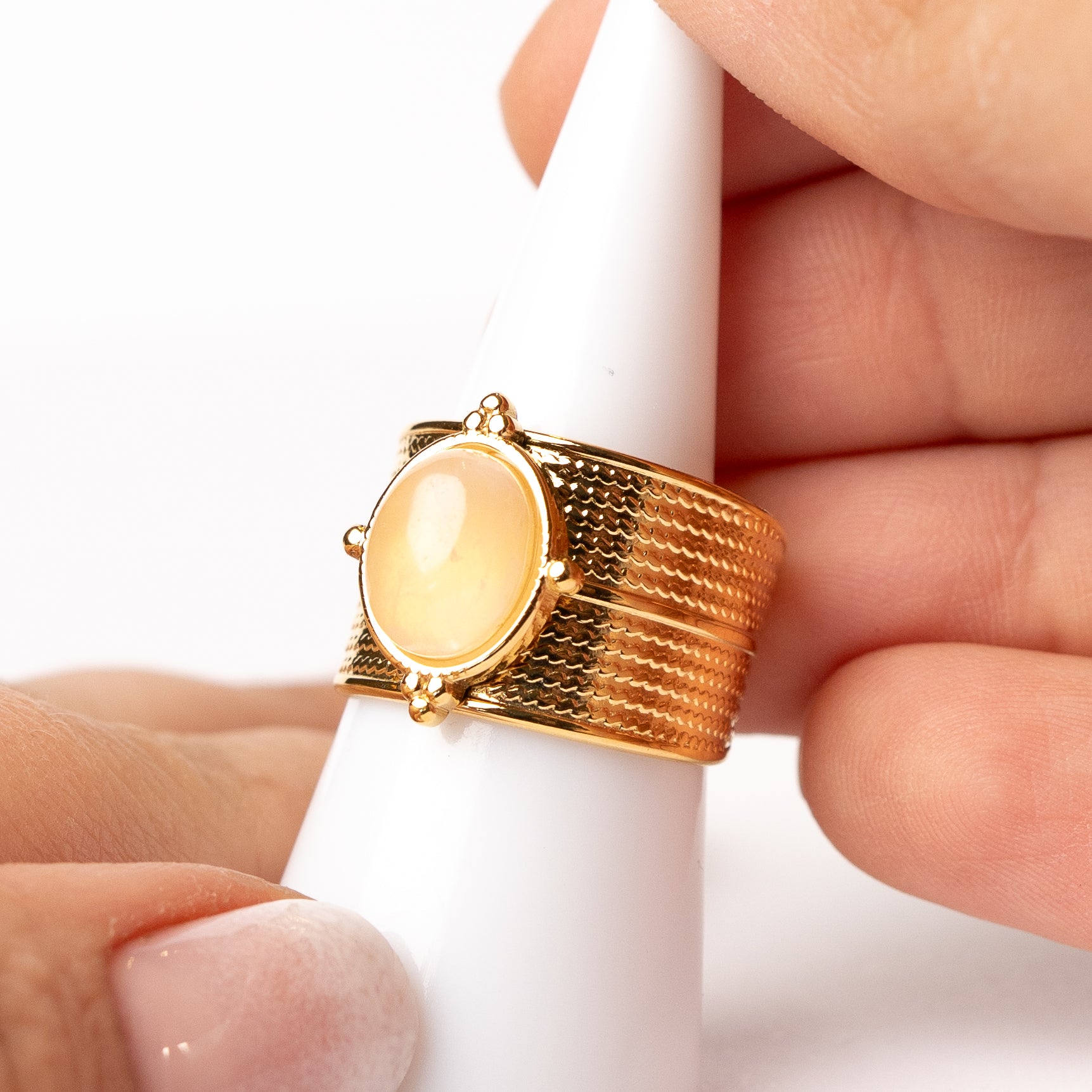 Anillo ajustable piedra diseño con ondas bañado en oro
