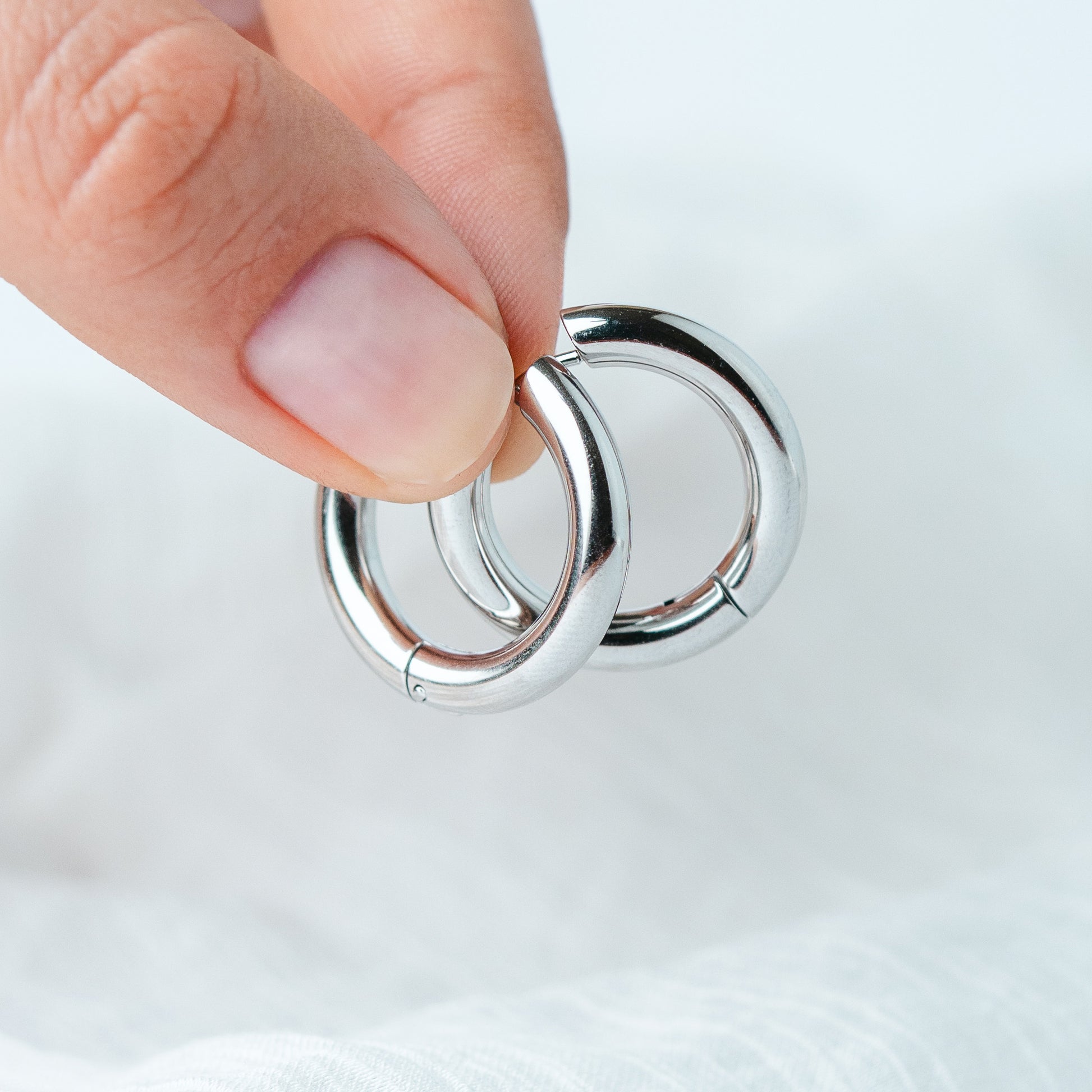 Argollas plateadas de diseño clásico con volumen suave y acabado brillante que aportan un look elegante y atemporal. Su estilo minimalista y versátil las convierte en un básico imprescindible, ideal para usar a diario o complementar cualquier outfit con un toque sofisticado.