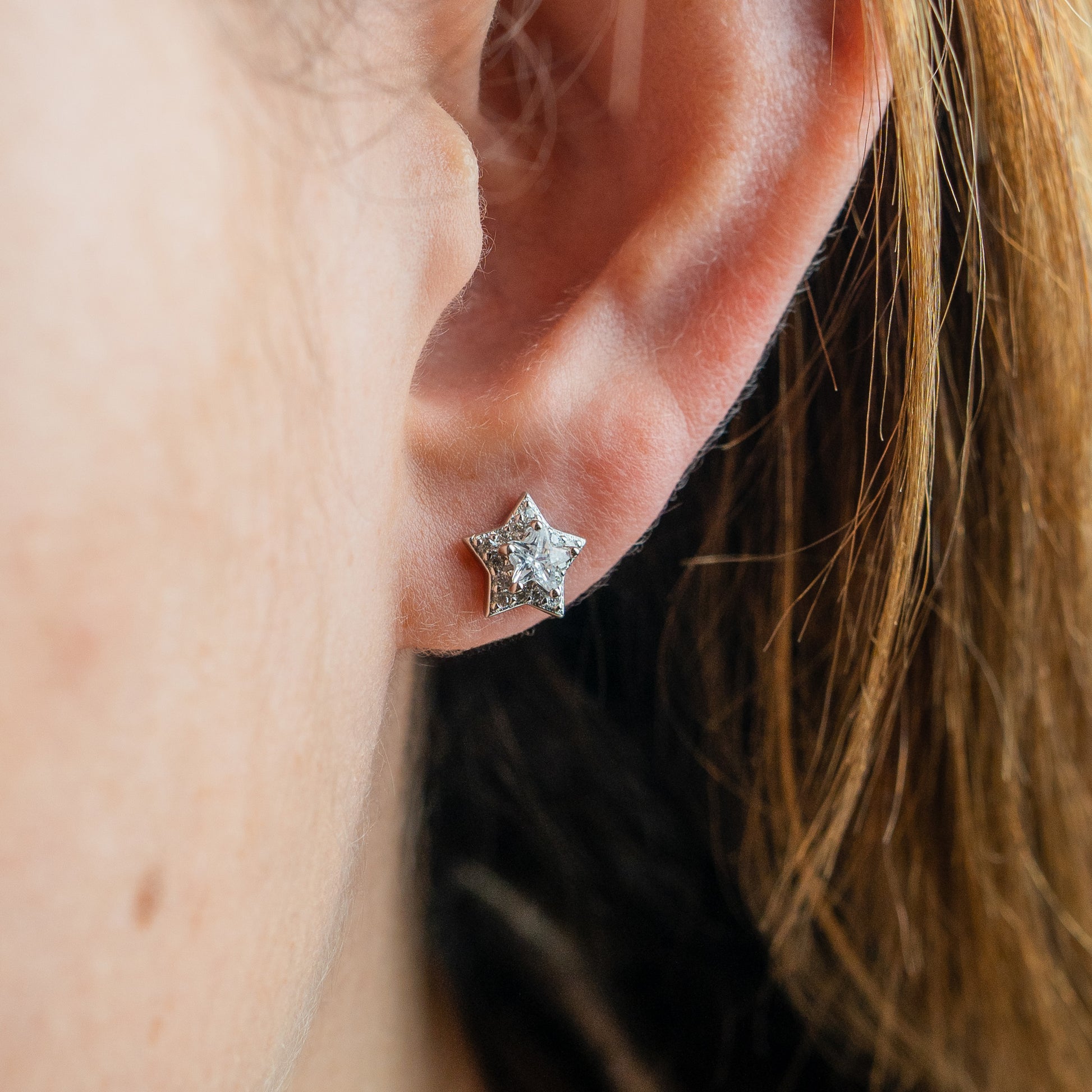 Aros de plata 925 con diseño de estrella circones, que aportan un efecto luminoso y delicado. Su formato pequeño y femenino los convierte en un accesorio versátil, ideal para el uso diario o para sumar un toque de brillo sutil a cualquier look.