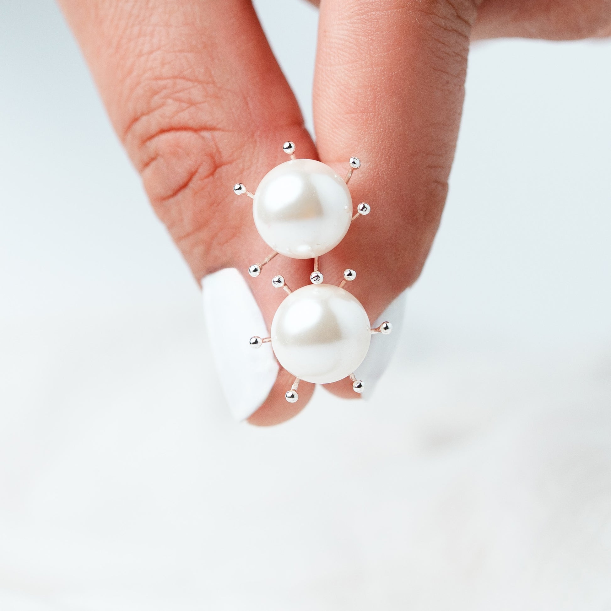 Estos aros en plata 925 destacan por su perla central de brillo suave de 10 mm, rodeada de finos rayos metálicos que crean un efecto sunburst elegante y llamativo. Su estilo fusiona lo clásico de la perla con una silueta contemporánea que atrae miradas sin perder delicadeza.