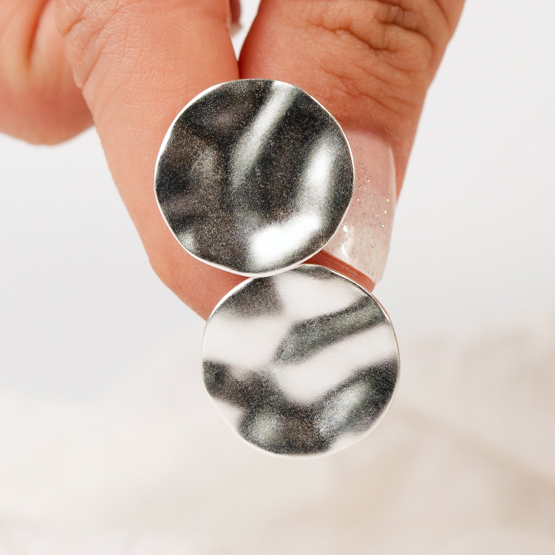 Aros con diseño de lámina ondulada en plata 925, inspirados en los reflejos del agua y las texturas orgánicas. Su acabado brillante crea un efecto espejo que ilumina el rostro y agrega un toque moderno, artístico y minimalista a cualquier look.