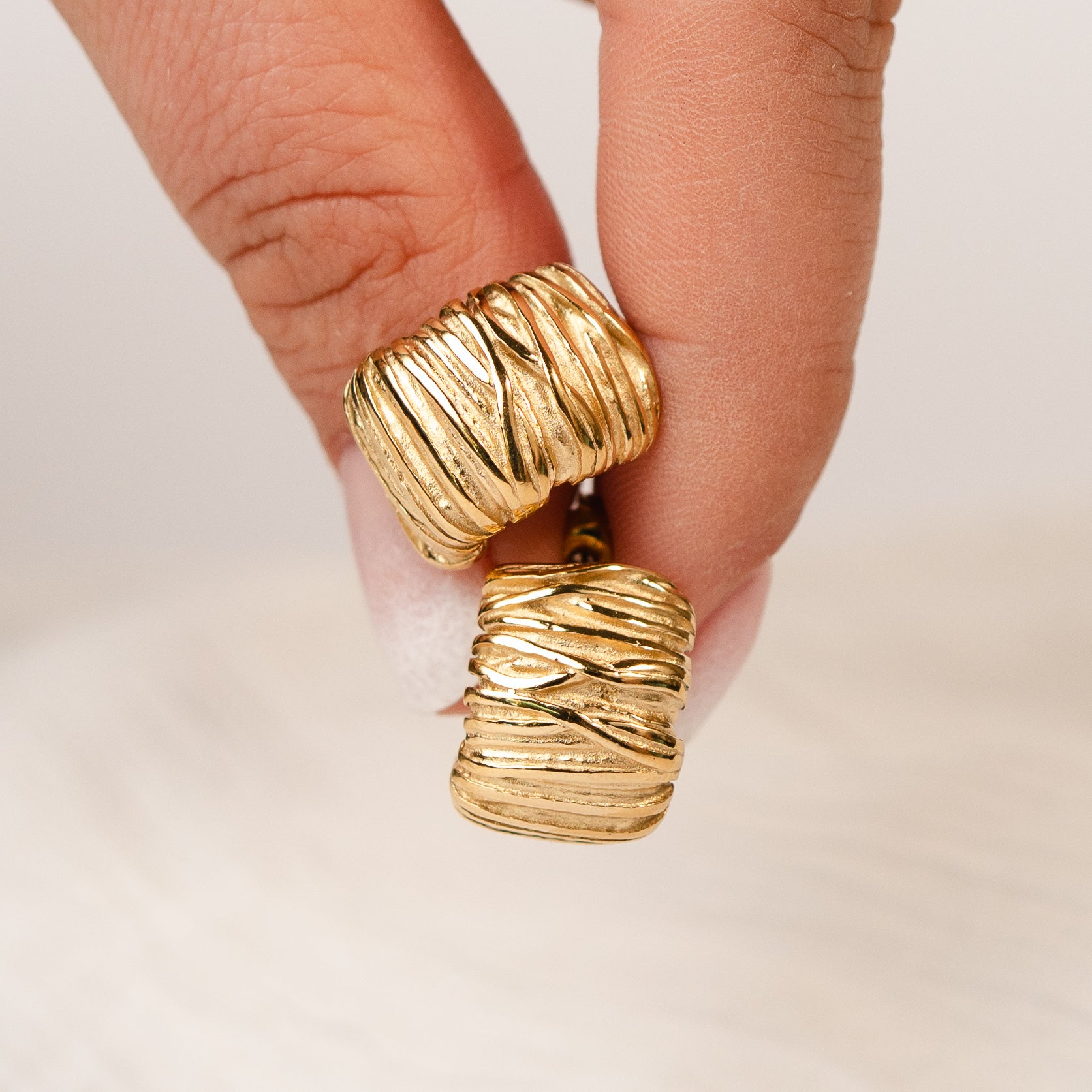 Los Aros Verona capturan la esencia del estilo europeo con su textura envolvente y acabado dorado brillante.