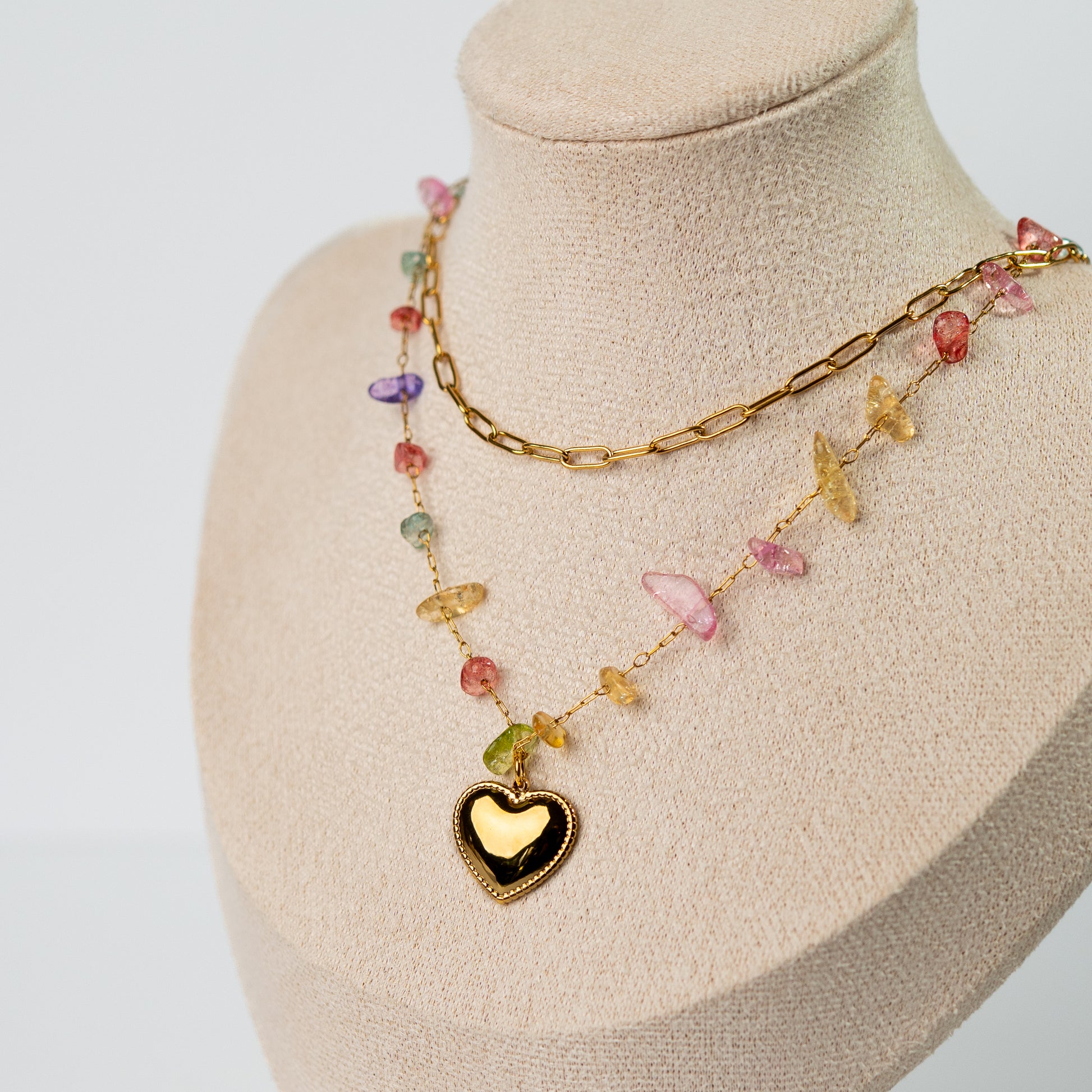 Collar doble mostacillas corazón bañado en oro