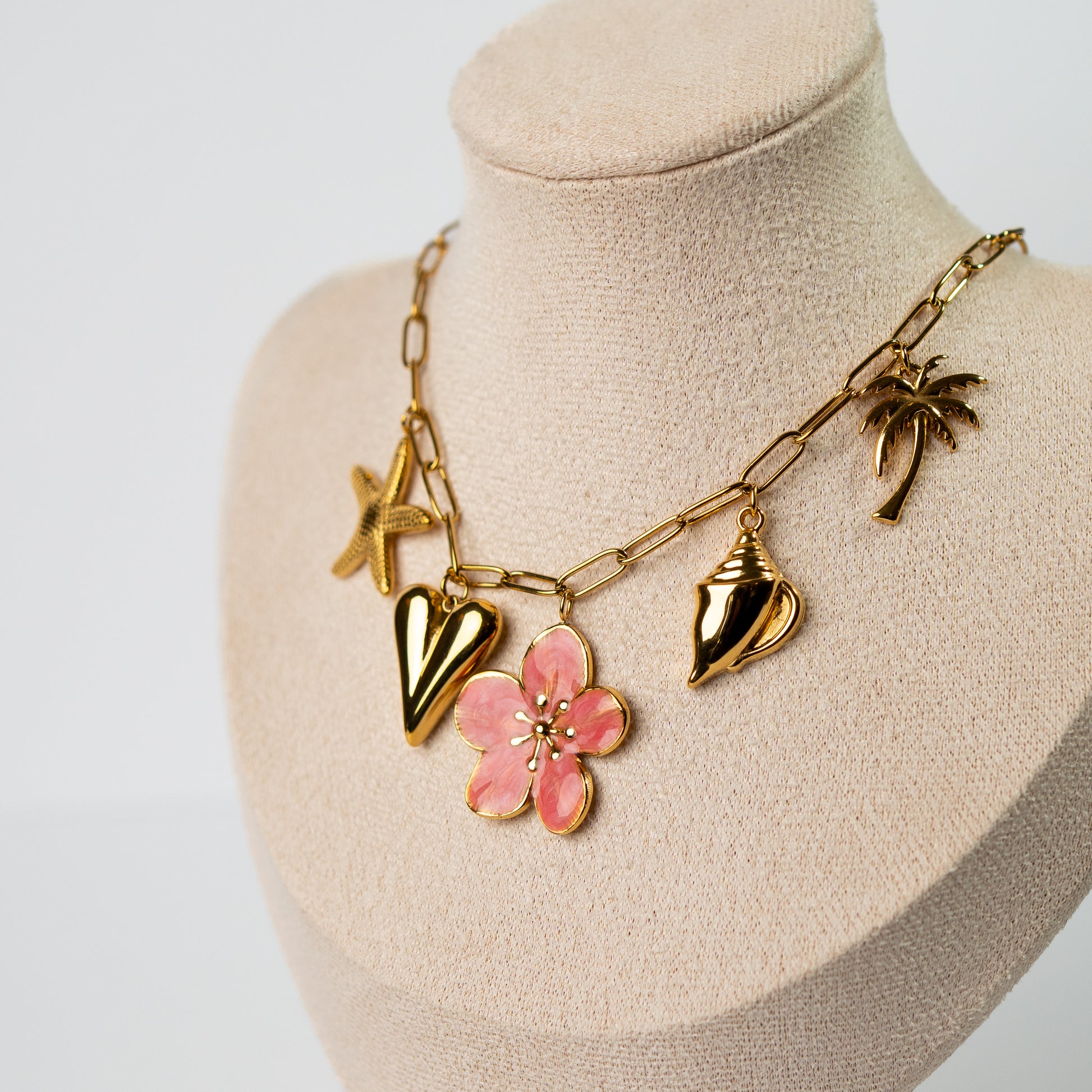Collar flor y chiches bañado en oro