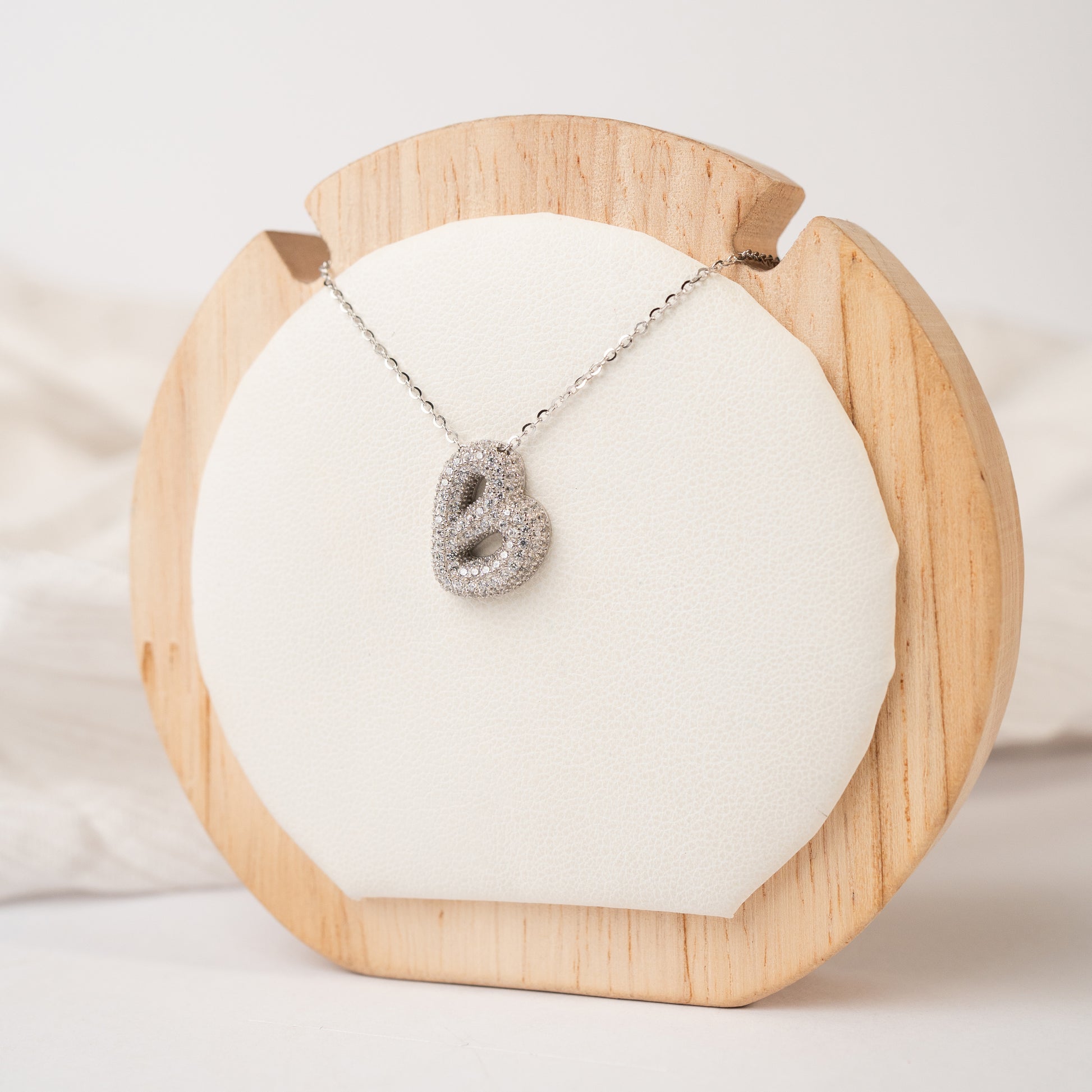 Este collar está elaborado en Plata 925 con un delicado diseño en forma de letra B recubierta de circones que aportan un brillo único. Ligero y cómodo, es el accesorio ideal para llevar todos los días o para regalar con un detalle lleno de estilo y significado personal.