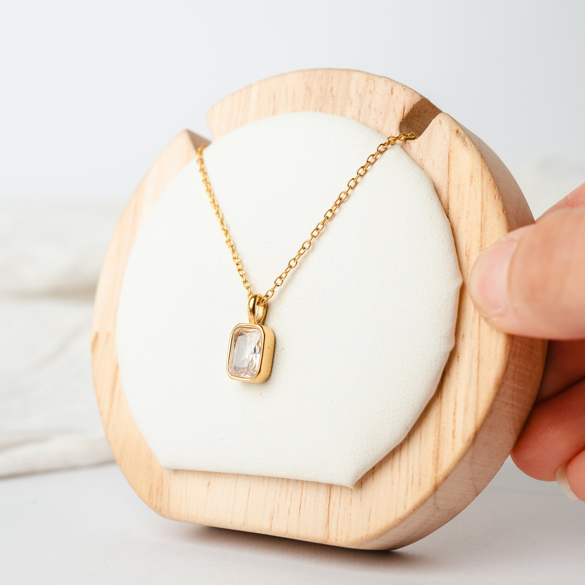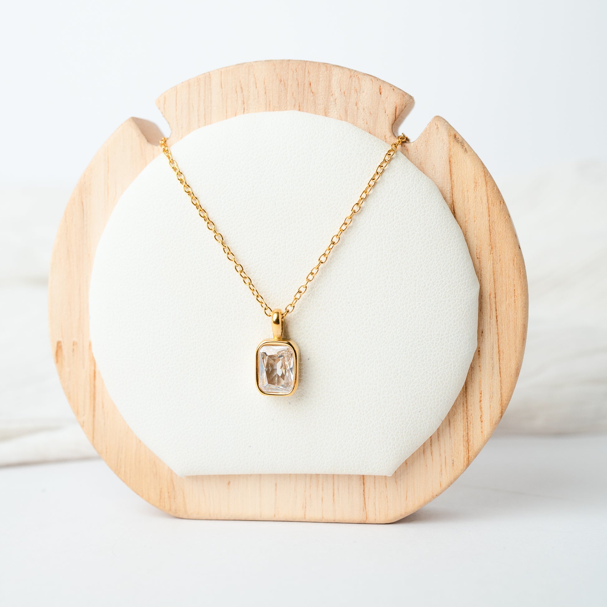 Un collar atemporal y luminoso, perfecto para darle un toque elegante a cualquier look. Su colgante rectangular destaca por su circón central, que refleja la luz con cada movimiento, aportando un brillo delicado y sofisticado sin exagerar.